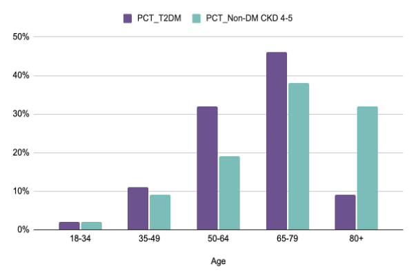 In comparing Type 2 diabetes (T2DM) patients to non-diabetic CKD patients, we uncover critical differences. Non-diabetic CKD patients tend to be older and more frequently female. A larger proportion of non-diabetic CKD patients rely on Medicare/Medicare Advantage, whereas more T2DM patients have commercial insurance. Certain regions have higher concentrations of one patient group over the other, affecting trial recruitment and commercial strategy.