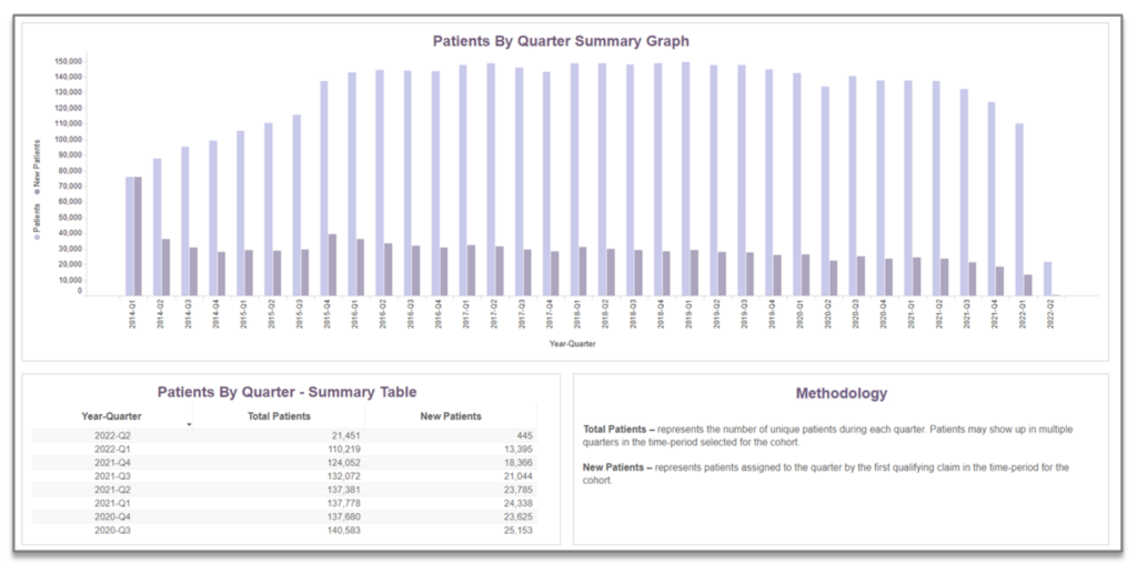 In recognition of national World Alzheimer’s Disease Month, PurpleLab™ used its HealthNexus™ platform to identify individuals with early onset AD and the providers taking care of them. We can use this real-world data for expansion of clinical drug trials as well as pharmaceutical marketing based on the inclusion of race, ethnicity, income, and education as additional markers for physician and pharmaceutical profiling. PurpleLab’s™ HealthNexus™ platform tracked almost 150,000 patients with early onset Alzheimer’s for over seven years, identifying new individuals each quarter.